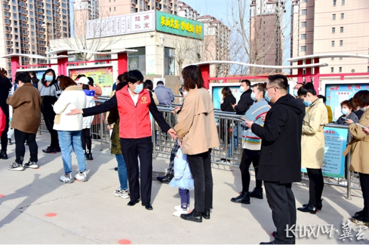 “金小芳园长在疫情防控中,充分发挥党员先锋带头作用,无惧无畏积极工作,无私奉献敢于担当,善于发现问题积极整改,一次次的开会商讨优化防疫措施,组织家长接送队伍,指导我们整理档案,帮助幼儿佩戴口罩,每天忙碌穿梭于抗疫工作之中,使我们幼儿园的防疫工作更加安全有序规范。她把自己的智慧和精力全部奉献给了我们幼儿园,是我们学习的榜样。”小三班教师张靖告诉记者。